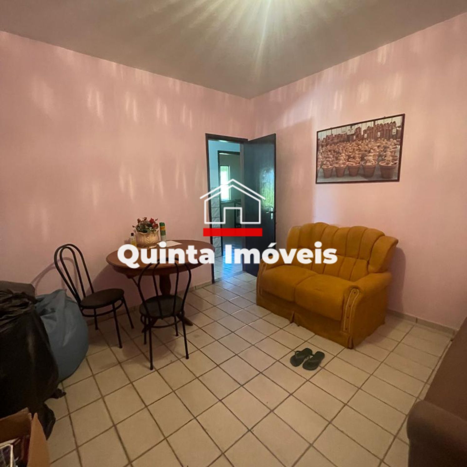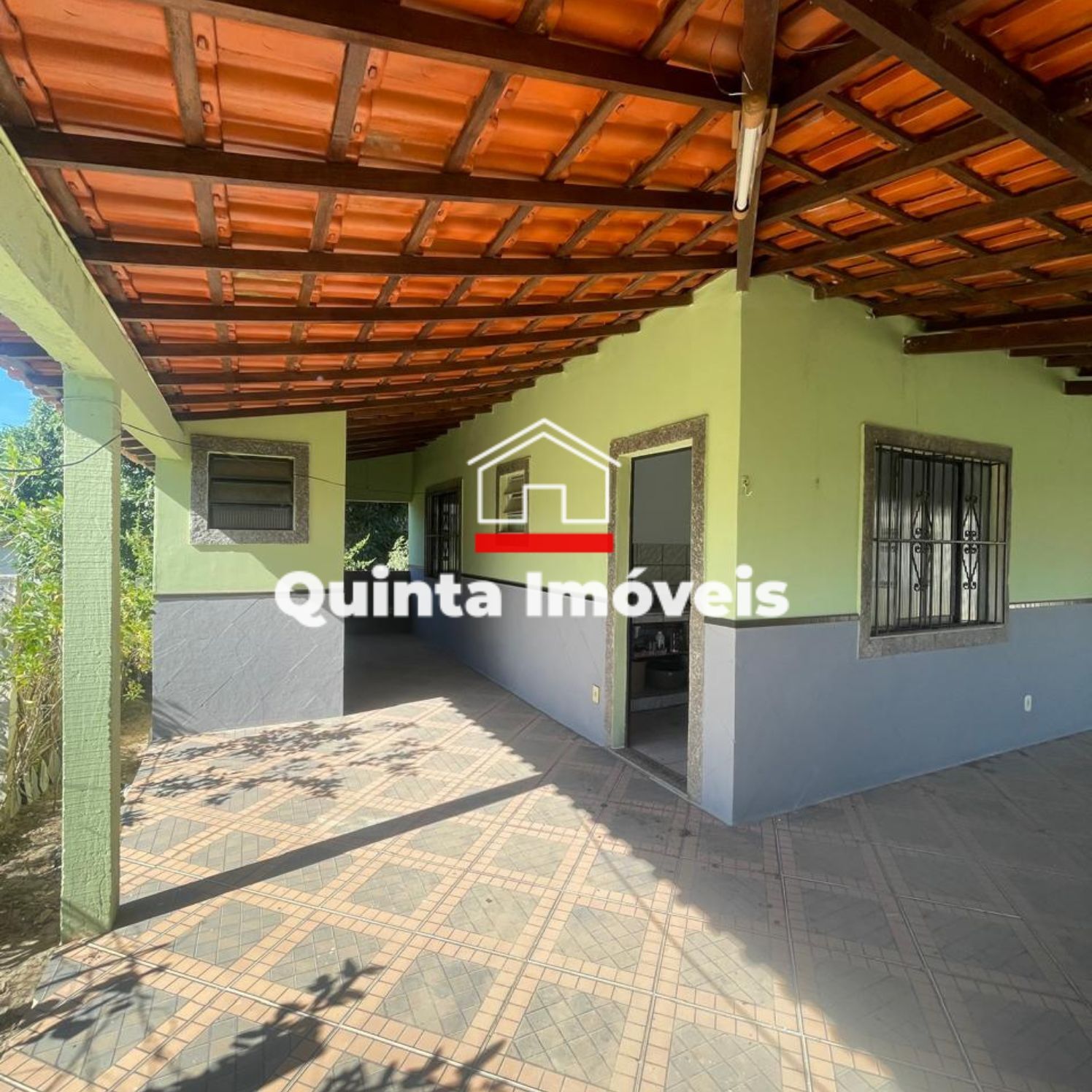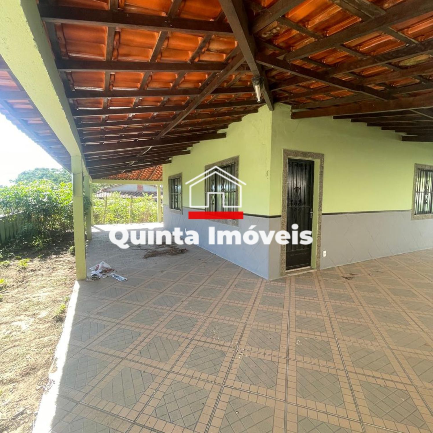 Casa com 2 quartos, sala, cozinha, banheiro social, área de serviço, varanda, quintal e vaga de garagem.