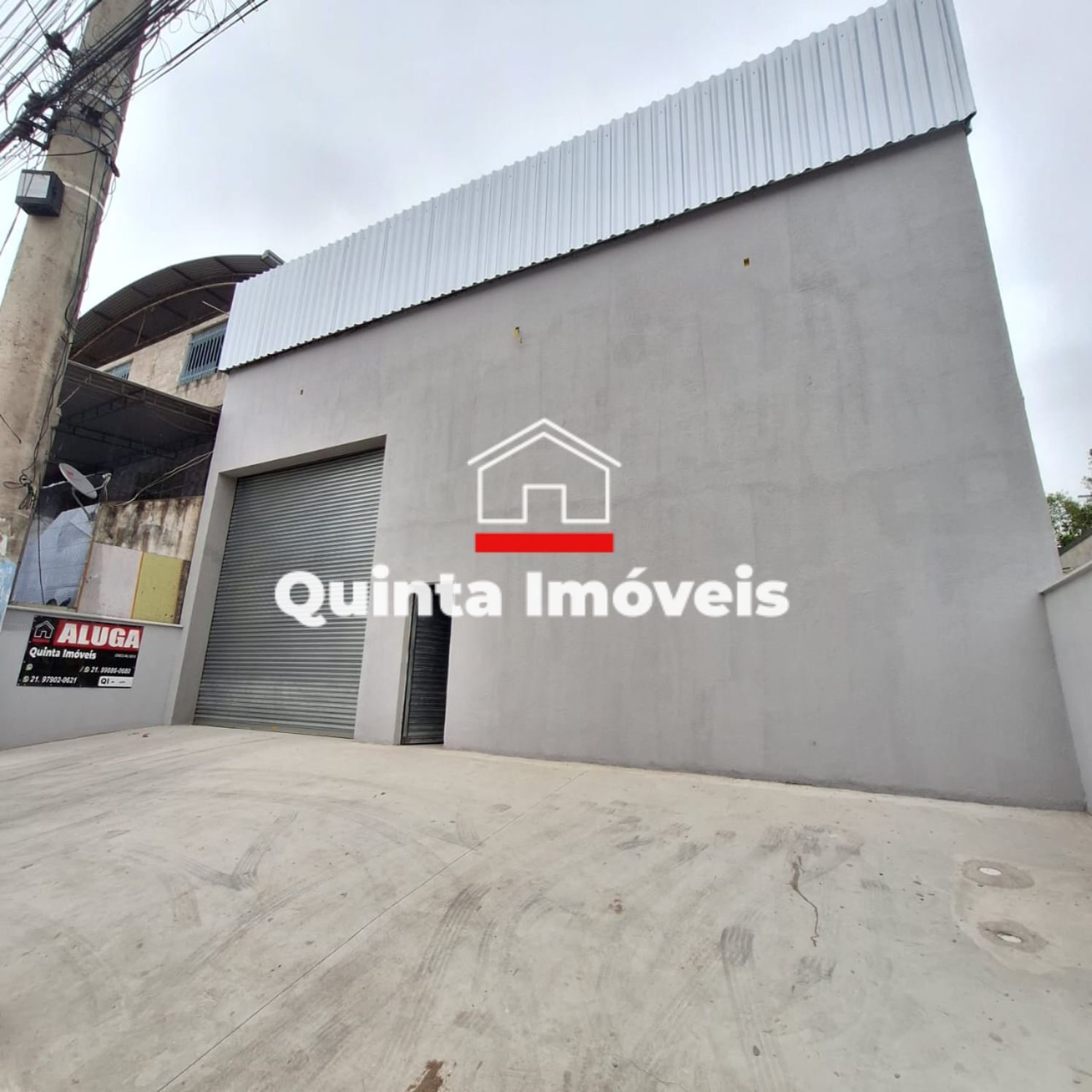 Galpão com primeira Locação medindo 300m², com pé direito medindo 7 metros, 2 banheiros, escritório, cisterna com 10 mil litros, poço e vaga de garagem para 3 carros. Localizado no bairro Nova Cidade da cidade de Itaboraí-RJ.